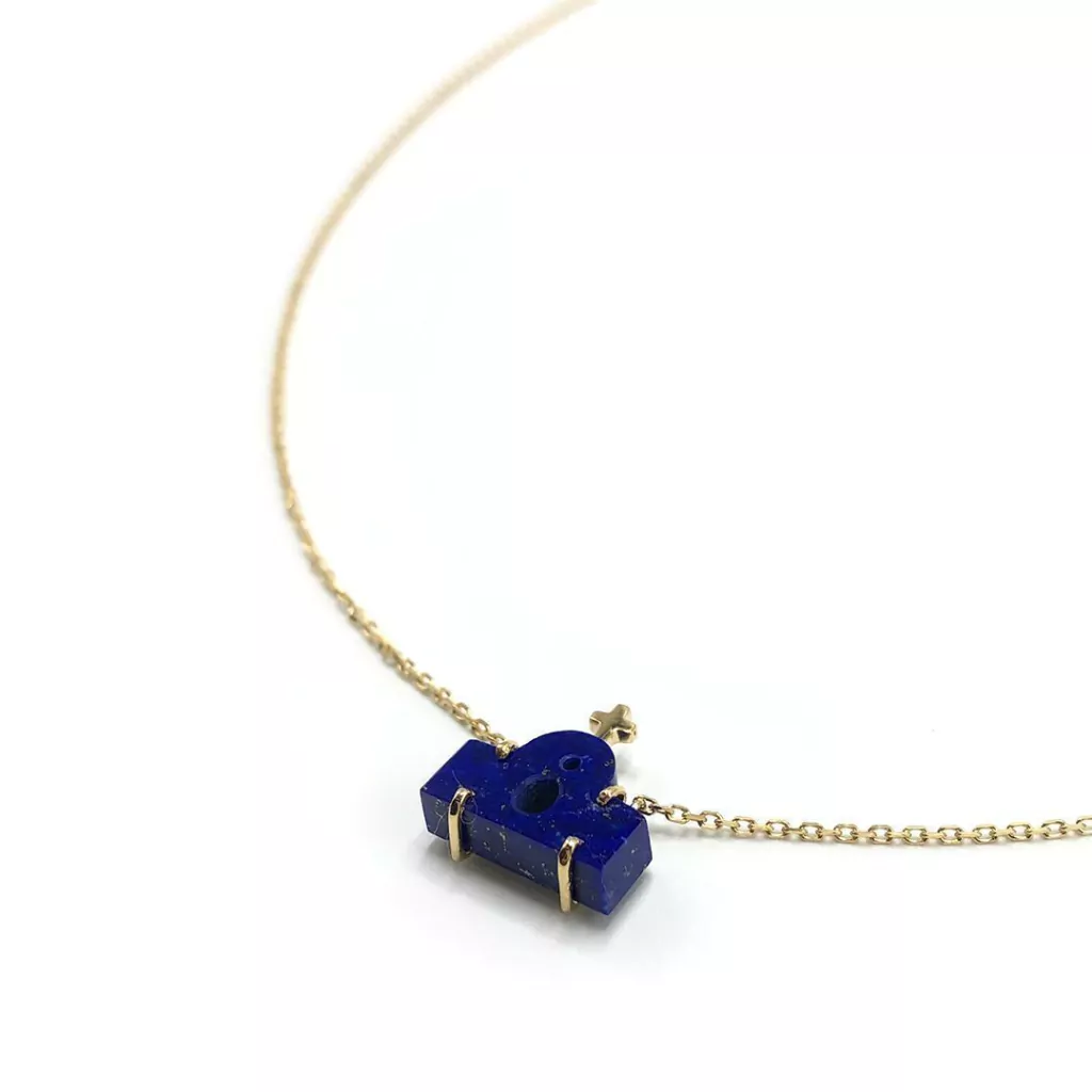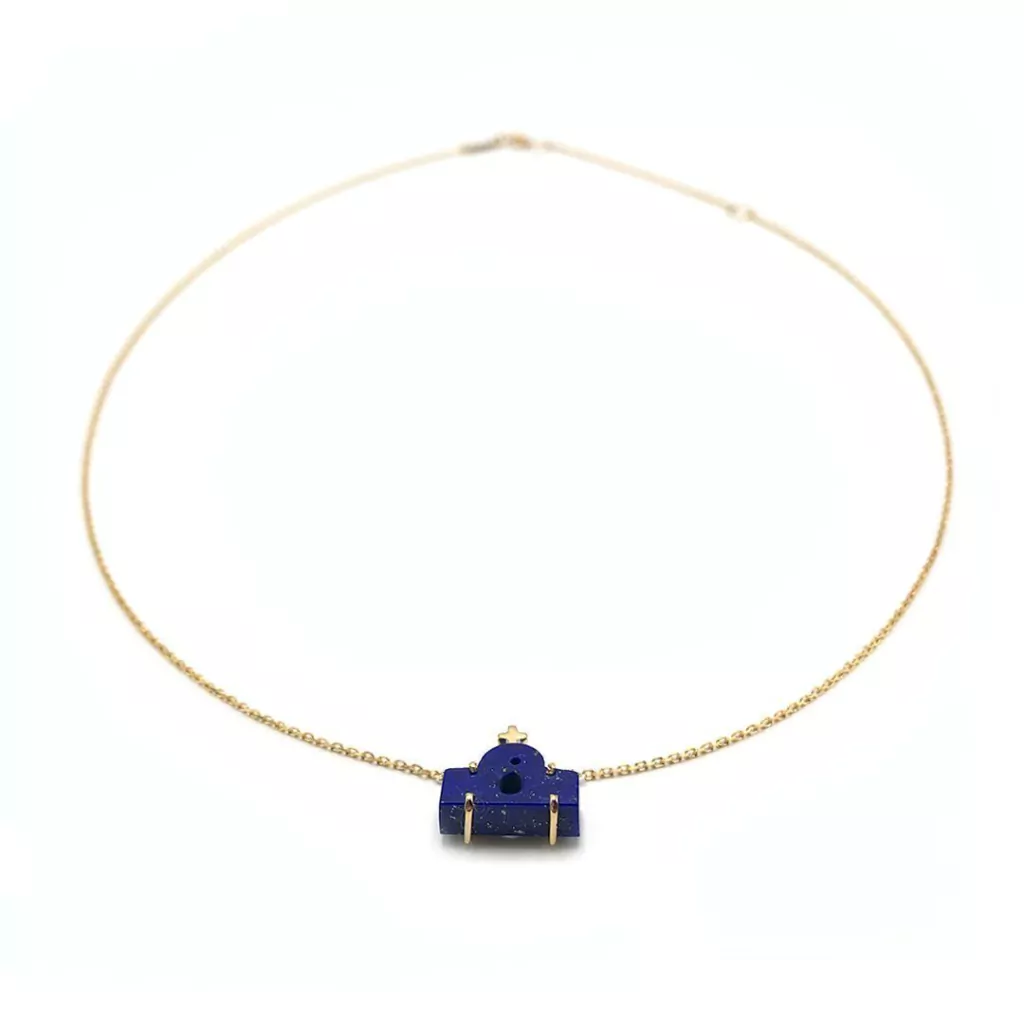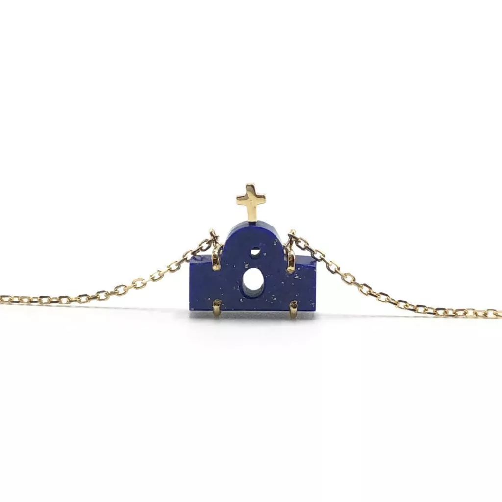 Colar capela do Bonfim em lápis lazuli ouro amarelo 18k