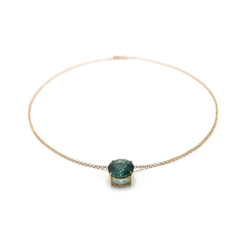 Colar em ouro rose 18k turmalina verde, design exclusivo Andrea Hermann, peça única desenvolvida á mão.