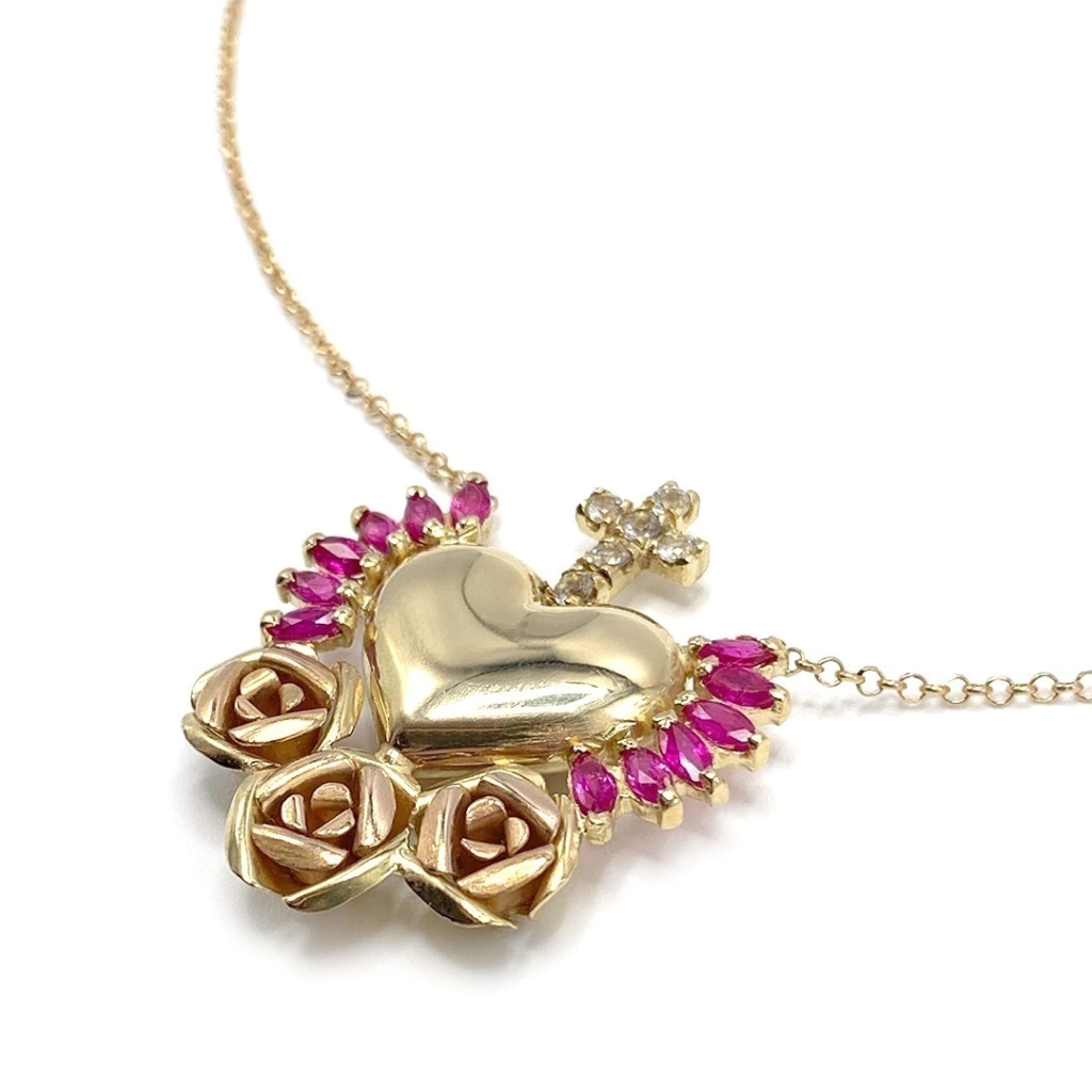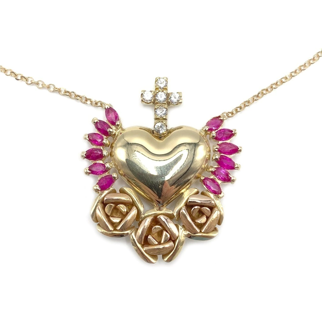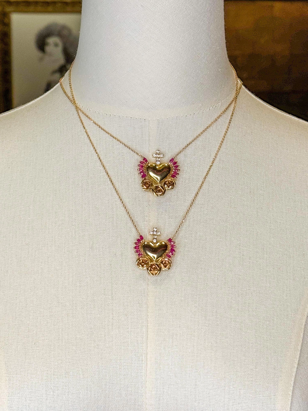 Colar Sagrado coração de jesus em baguete de rubi, ouro amarelo 18k, design exclusivo Andrea Hermann, peça única desenvolvida à mão.