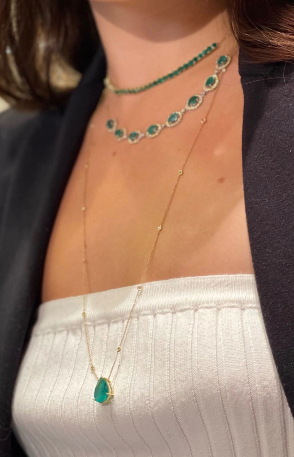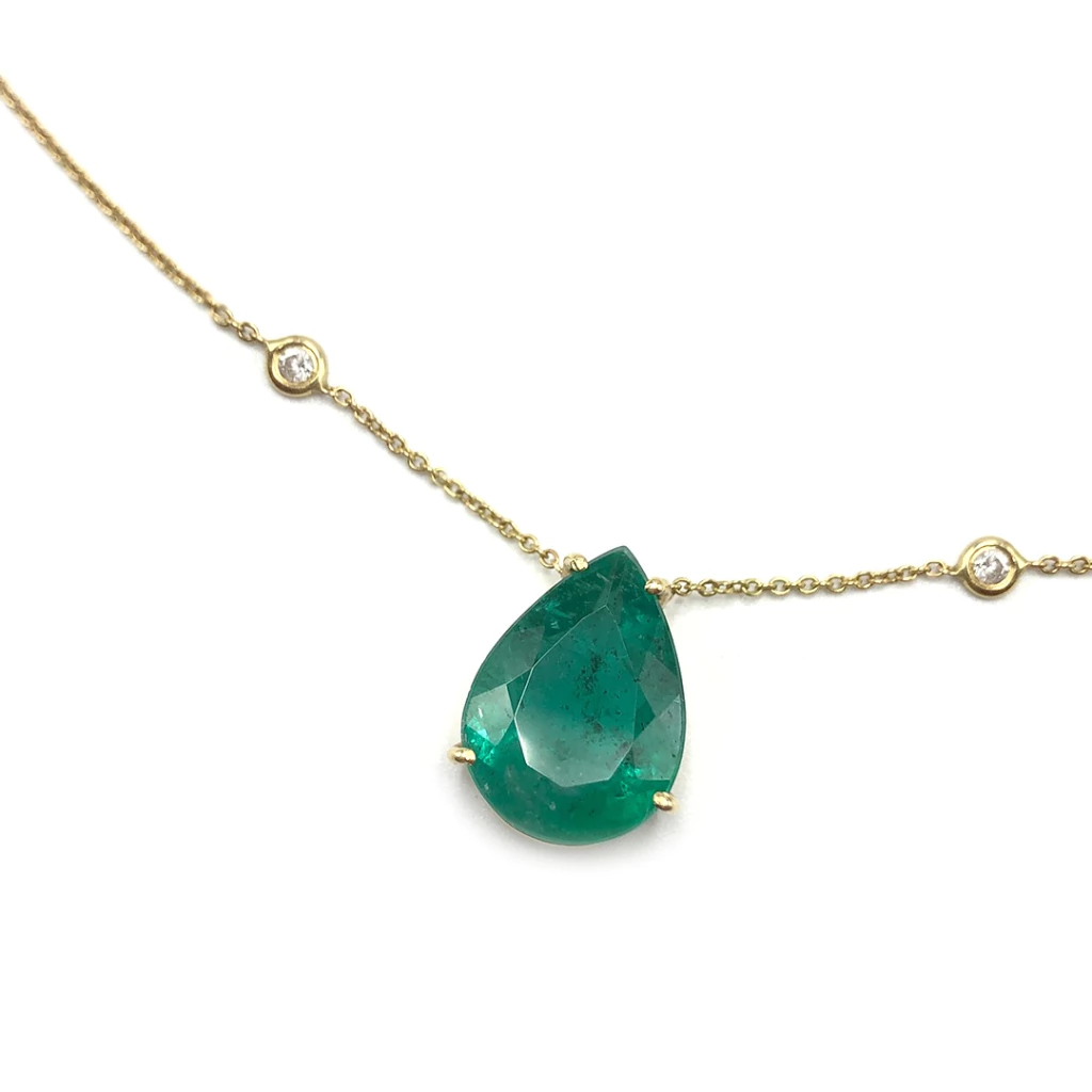 Colar em ouro amarelo 18k corrente com tiffany e esmeralda gota, design exclusivo Andrea Hermann, peça única desenvolvida á mão.